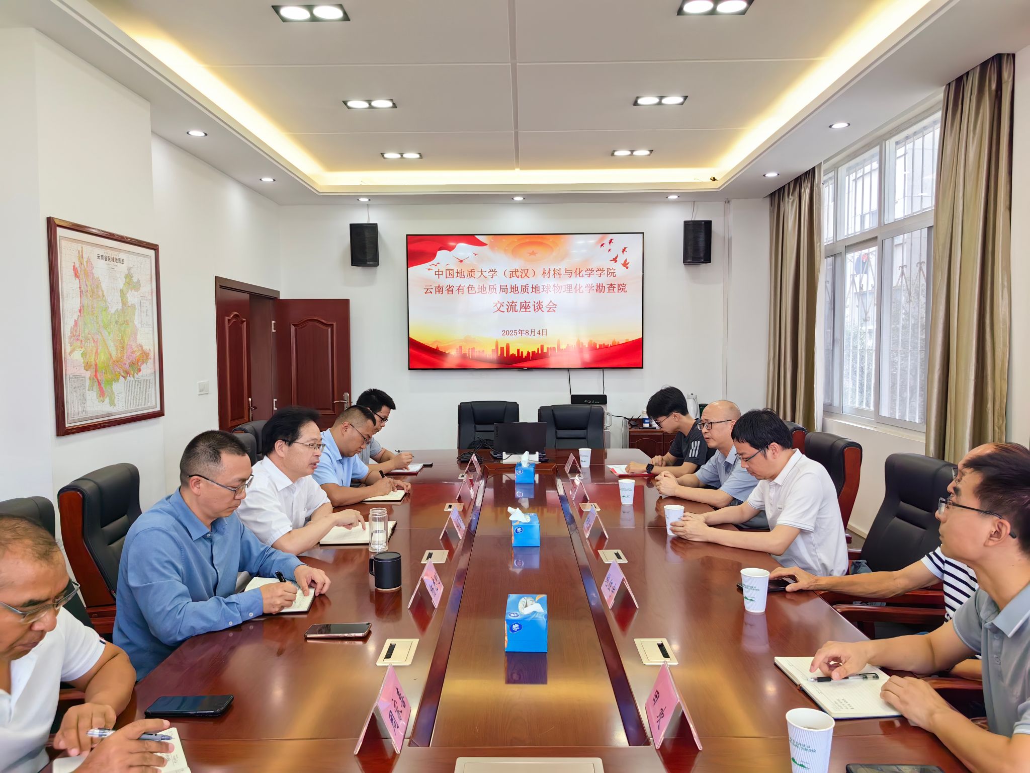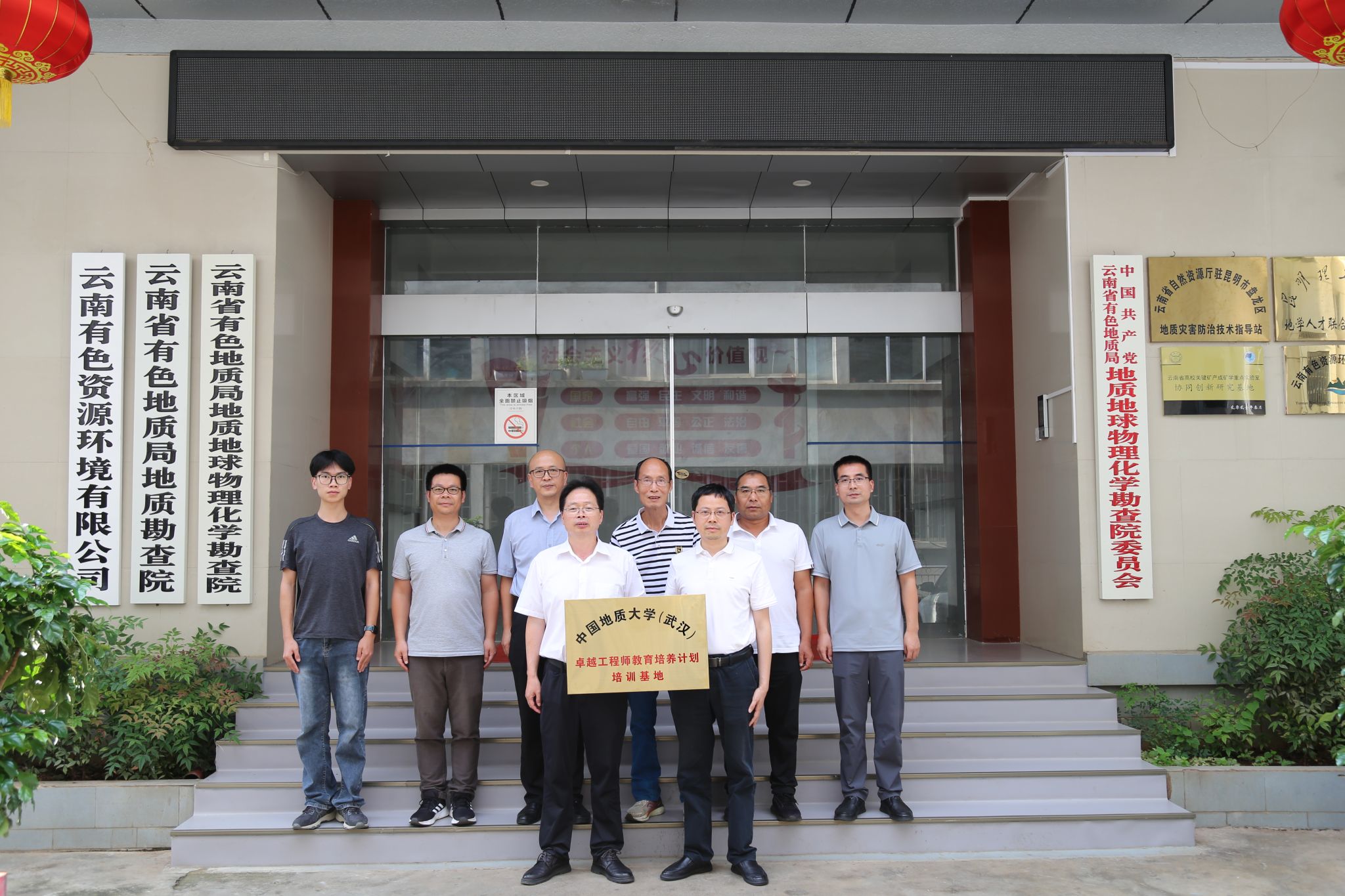 院长胡兆初、教师代表鲍征宇、鲁立强、田欢和学生代表黄旭升赴云南省有色地质局地质地球物理化学勘查院(以下简称“物勘院”)开展专题调研交流,并举行共建“本科卓越工程师培养计划培训基地”挂牌仪式。