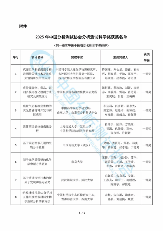 11月25日,中国分析测试协会公布了中国分析测试协会分析测试科学奖2025年度获奖名单,共评出获奖项目43项。91短视频
